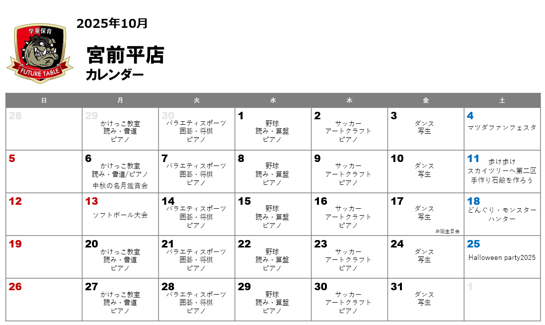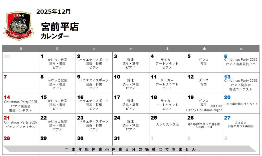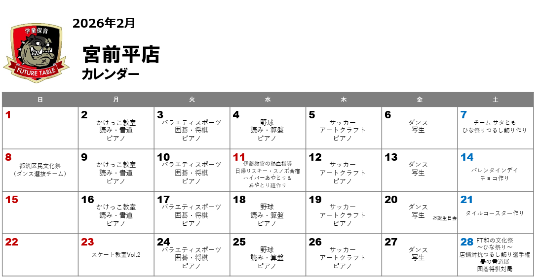 宮前平店 月間プログラム